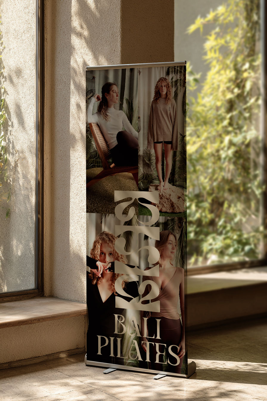 Einmal alles, bitte! Für Balipilates habe ich das gesamte Design-Paket geschnürt. Angefangen beim Logo-Design bis hin zur Gestaltung von Stickern und anderen Werbemitteln. Ein durchgängiges Konzept, das auf allen Kanälen funktioniert und die Marke greifbar macht. Klar, modern und mit Liebe zum Detail